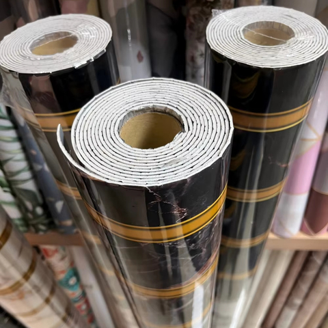 Rollo de espuma de PVC autoadhesivo MOI, diseño de mármol 3D brillante, moderno, resistente al agua, adhesivo para pared para uso en varias habitaciones